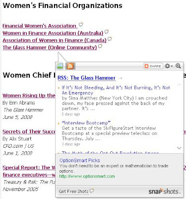 As of this writing, WomenofFinance showed four external links from WhyPark-supplied articles. Snap provides previews of these sites too. You also have the option of activating previews for links within the same site. However, we don't think previews of screens within the same WhyPark site are very useful.